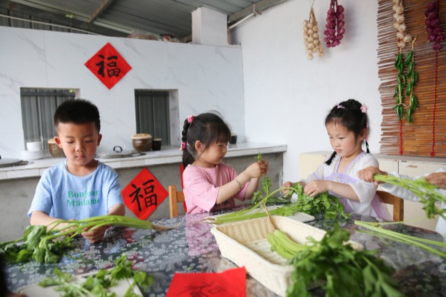 小朋友們?cè)隗w驗(yàn)摘芹菜 通訊員 徐慧 攝
