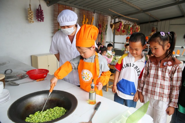小朋友們?cè)趯W(xué)習(xí)炒蠶豆 通訊員 徐慧 攝