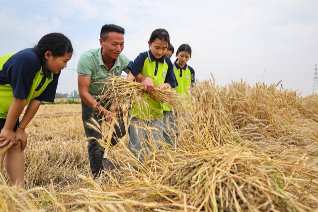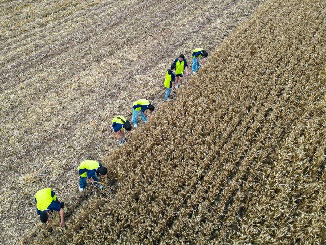5月21日,湖北省襄陽市樊城區(qū)竹條實(shí)驗(yàn)中學(xué)的學(xué)生們來到田間,在當(dāng)?shù)卮迕竦闹笇?dǎo)下收割小麥、撿拾麥穗,在沉浸式體驗(yàn)中感受勞動的意義和農(nóng)忙時豐收的喜悅。近年來,襄陽市樊城區(qū)鼓勵各學(xué)校充分利用社會資源,帶領(lǐng)學(xué)生走進(jìn)田間地頭開展勞動實(shí)踐活動,引導(dǎo)學(xué)生在掌握勞動技能、提升勞動素養(yǎng)的同時,感受鄉(xiāng)村振興的變化。中國教育報(bào)-中國教育新聞網(wǎng)通訊員 聶志鵬 攝