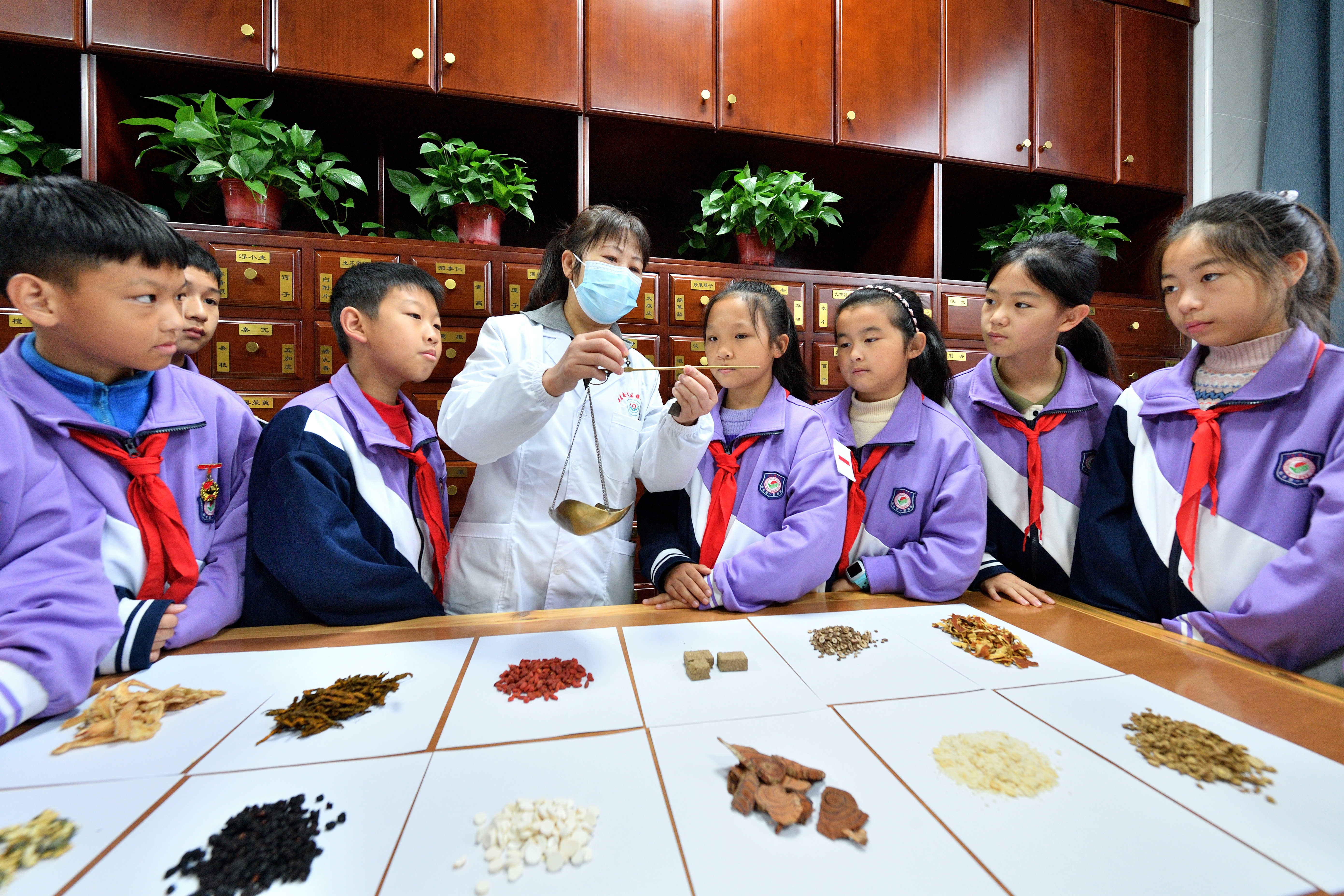 10月21日,湖北省襄陽市??悼h實(shí)驗(yàn)小學(xué)開展“學(xué)習(xí)中醫(yī)藥知識,感受中醫(yī)藥魅力”為主題的課外實(shí)踐活動。學(xué)生們走進(jìn)??悼h城關(guān)鎮(zhèn)衛(wèi)生院中藥房,在醫(yī)務(wù)人員的指導(dǎo)下識別中藥材,觀摩體驗(yàn)抓藥,了解中醫(yī)藥知識,感受中醫(yī)魅力,迎接10月22日“世界傳統(tǒng)醫(yī)藥日”的到來。(中國教育報(bào)-中國教育新聞網(wǎng)通訊員 楊韜 楊濟(jì)東 攝)