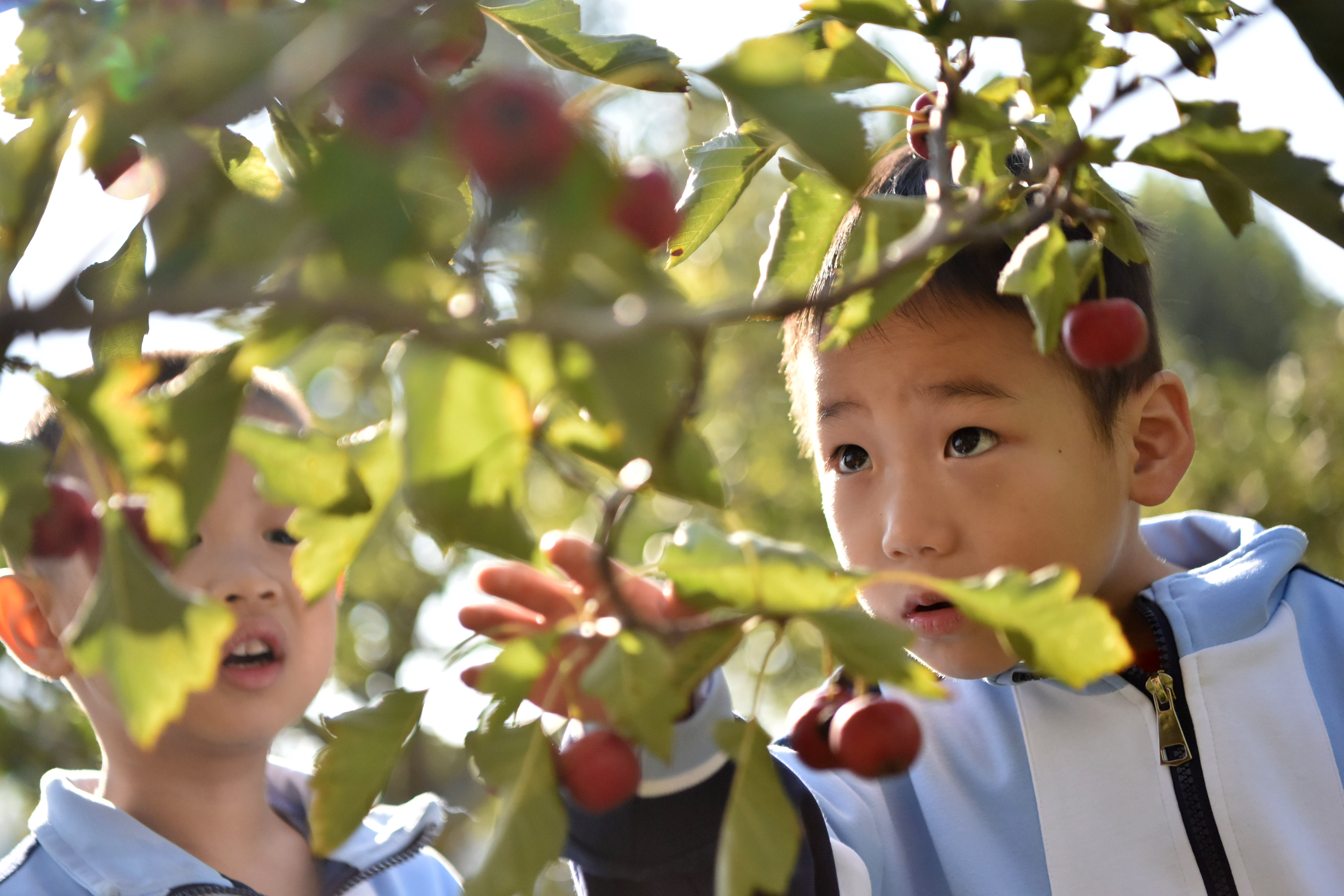 孩子們在觀察山楂。李海濤 攝