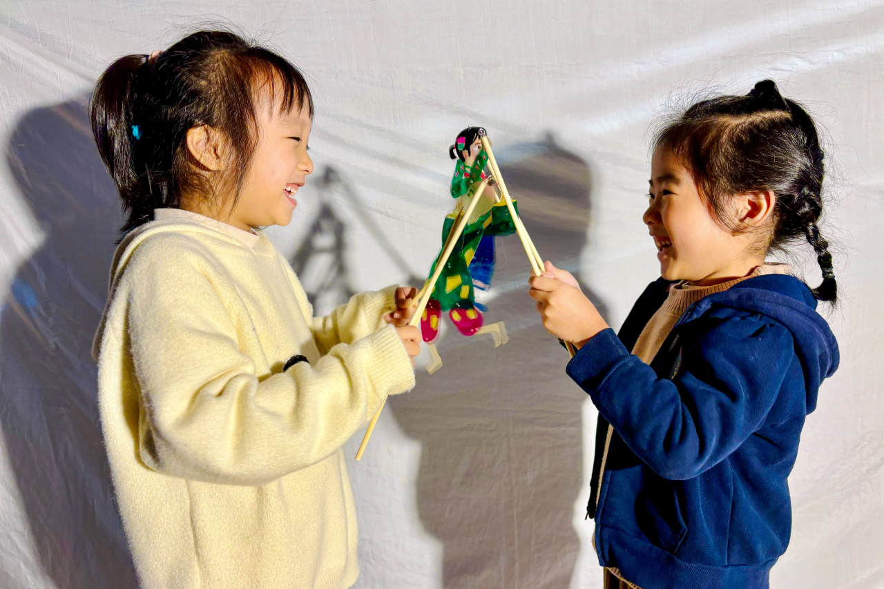 孩子們體驗(yàn)非遺皮影戲 譚云俸 尹鍶 攝