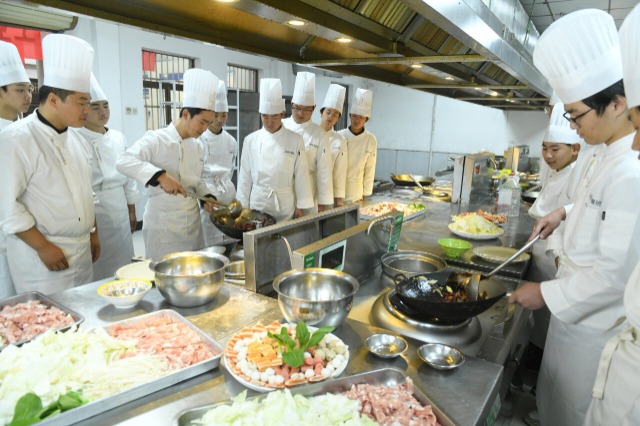 學(xué)生在實訓(xùn)室內(nèi)學(xué)習(xí)烹飪技能知識 王彪 攝