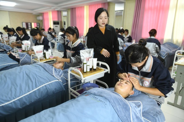 阜陽工業(yè)經(jīng)濟學(xué)校緊緊圍繞市場經(jīng)濟發(fā)展和社會需求,優(yōu)化專業(yè)結(jié)構(gòu),扎實推進教學(xué)改革,先后開設(shè)了中餐烹飪、美發(fā)與形象設(shè)計、幼兒保育、數(shù)字媒體技術(shù)運用、工業(yè)機器人應(yīng)用等23個專業(yè),讓學(xué)生學(xué)有一技之長,更好地促進就業(yè),不斷推動技能人才培養(yǎng)水平。(中國教育報-中國教育新聞網(wǎng) 通訊員 王彪 攝)