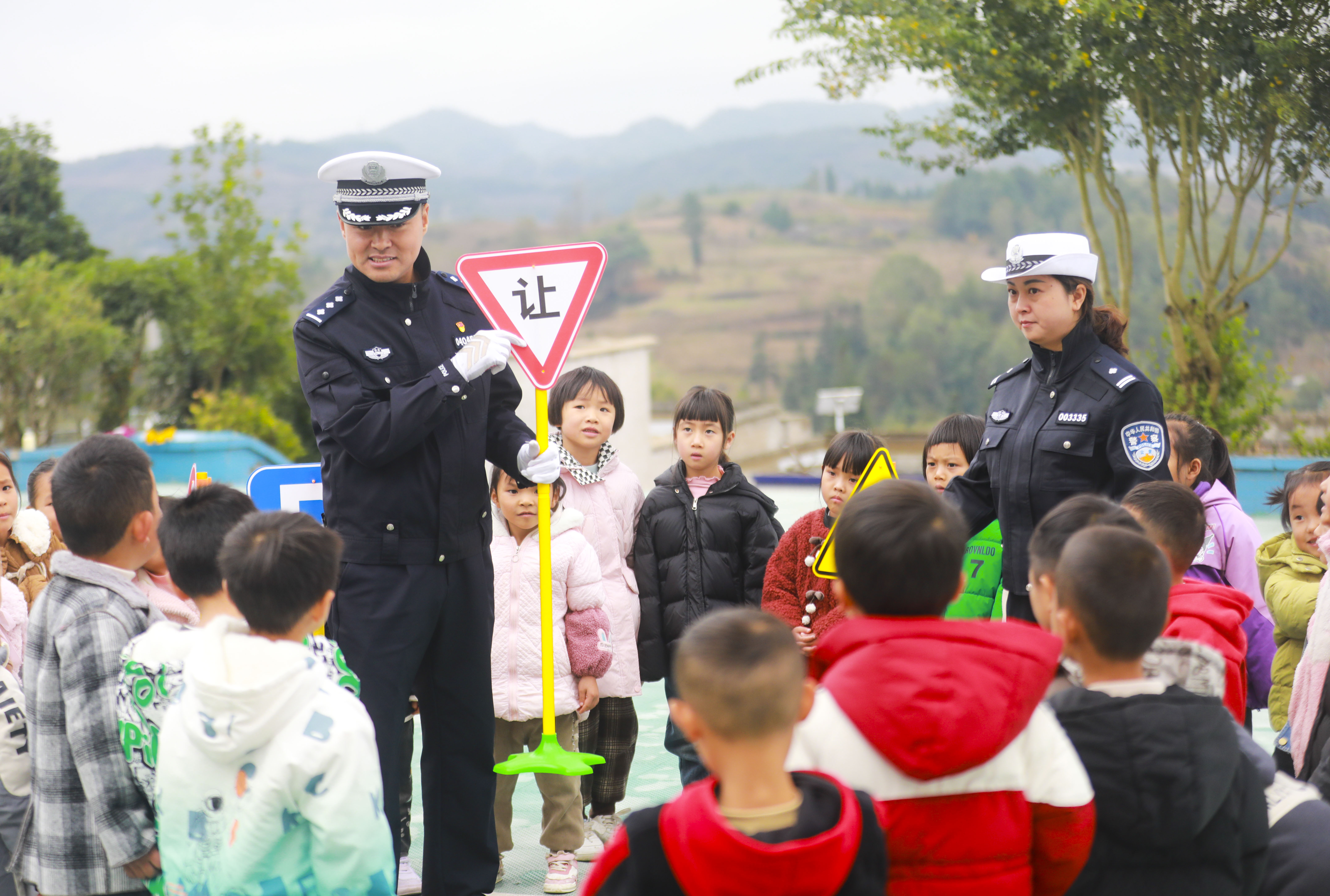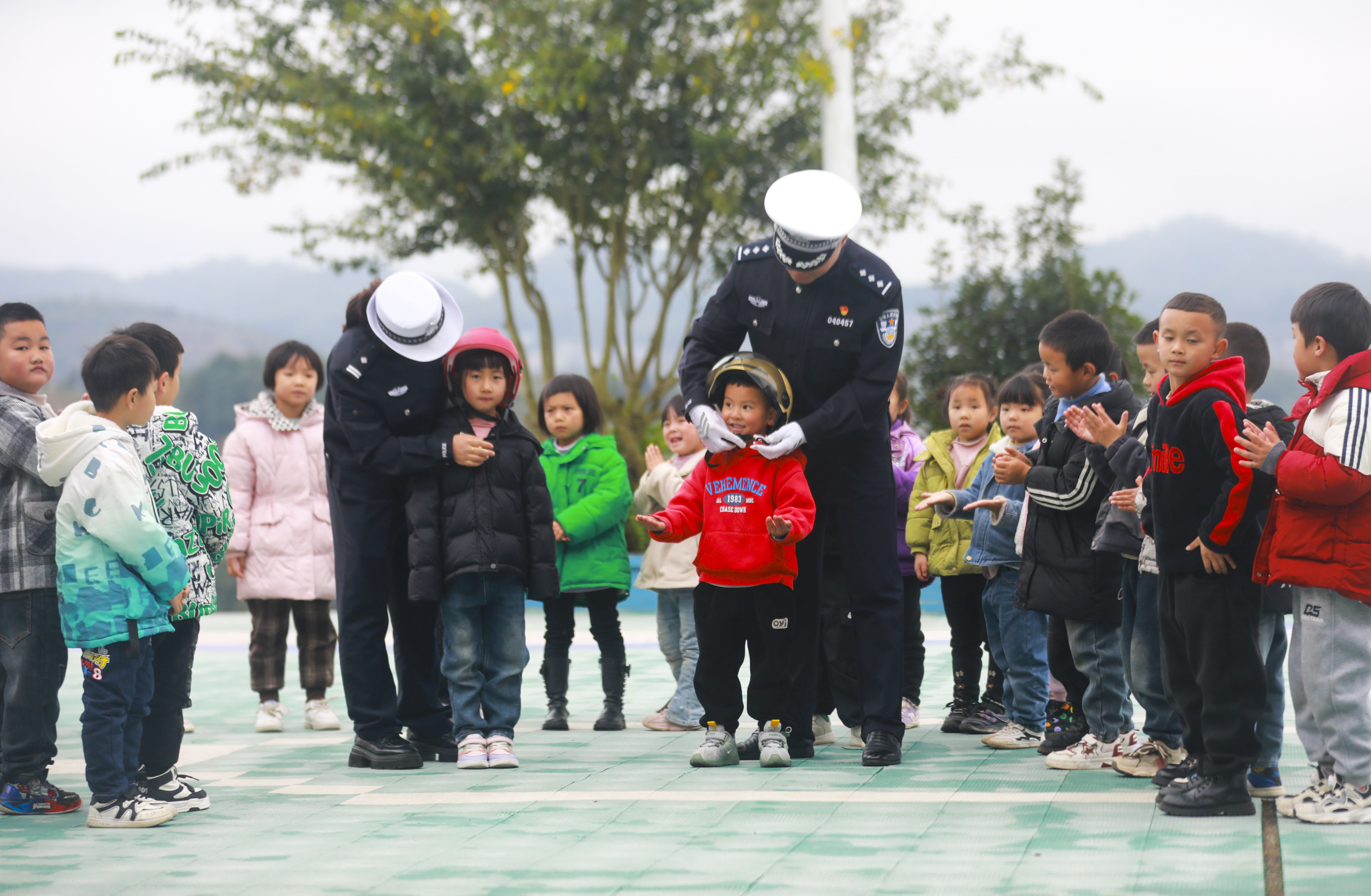 11月19日,貴州省畢節(jié)市公安局交通管理局高速三大隊走進黔西市五里布依族苗族鄉(xiāng)中心幼兒園,開展“交通安全進校園”宣傳教育活動,通過教孩子們體驗盲區(qū)視線、講解交通安全知識、正確佩戴頭盔等內(nèi)容,旨在提高孩子們的交通安全意識,確保安全文明出行。(中國教育報-中國教育新聞網(wǎng)通訊員 張志 周訓(xùn)超 攝)