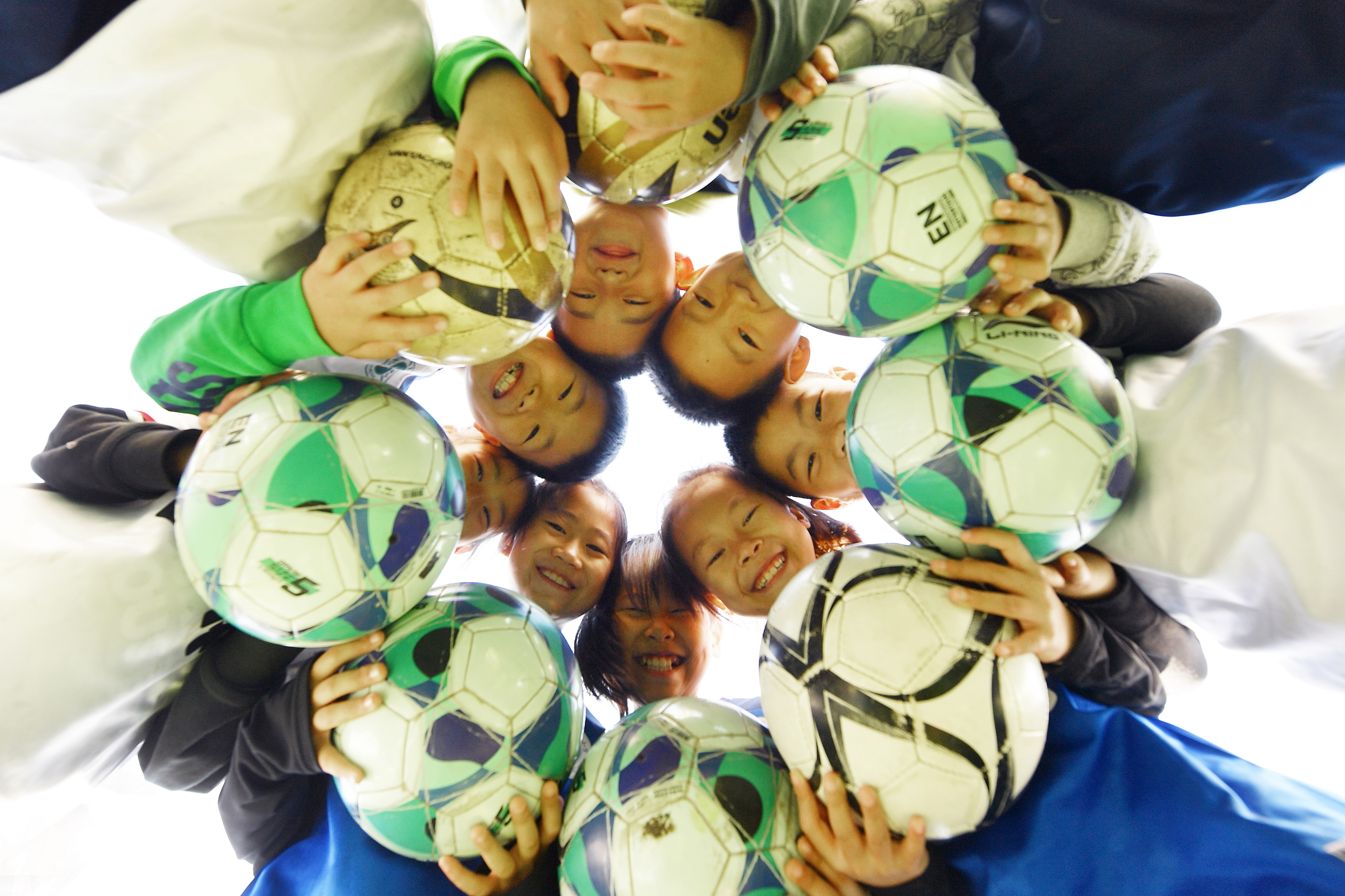 11月18日,在山東省青島市吉林路小學(xué)開展的足球冬訓(xùn)活動中,孩子們在對抗賽前加油鼓勁。王海濱 攝