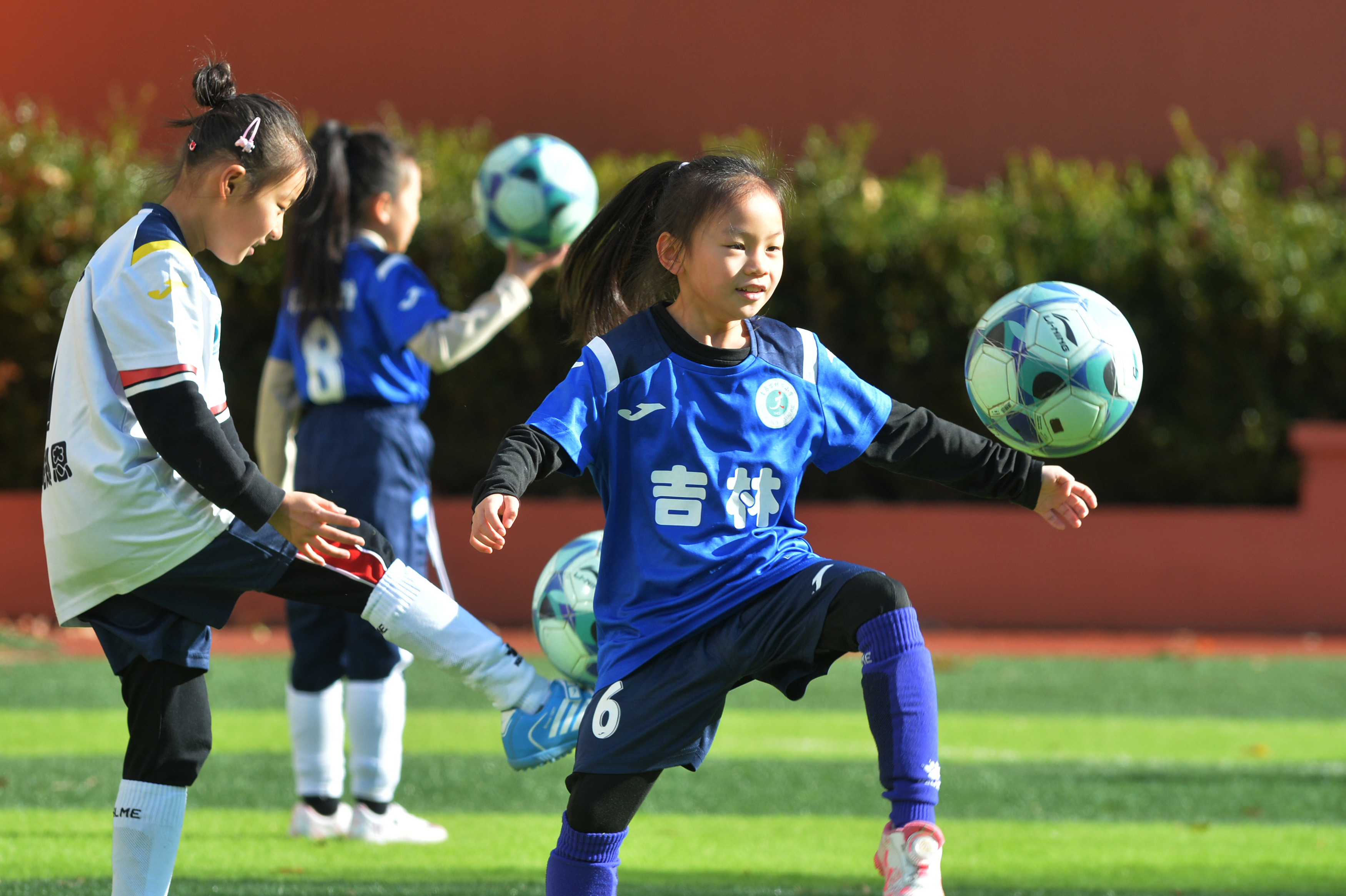 11月18日,在山東省青島市吉林路小學(xué)開展的足球冬訓(xùn)活動中,孩子們在進(jìn)行顛球訓(xùn)練。王海濱 攝