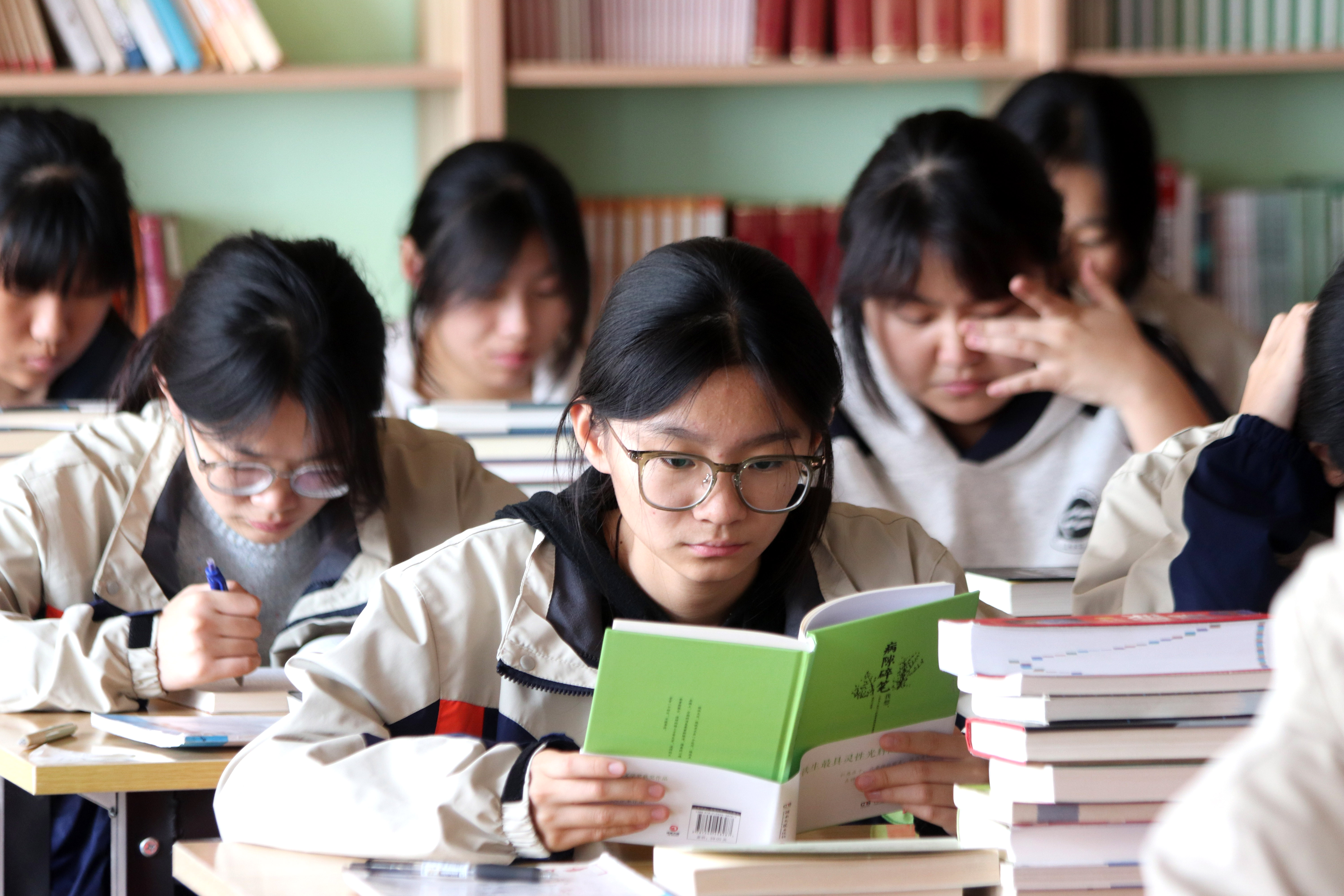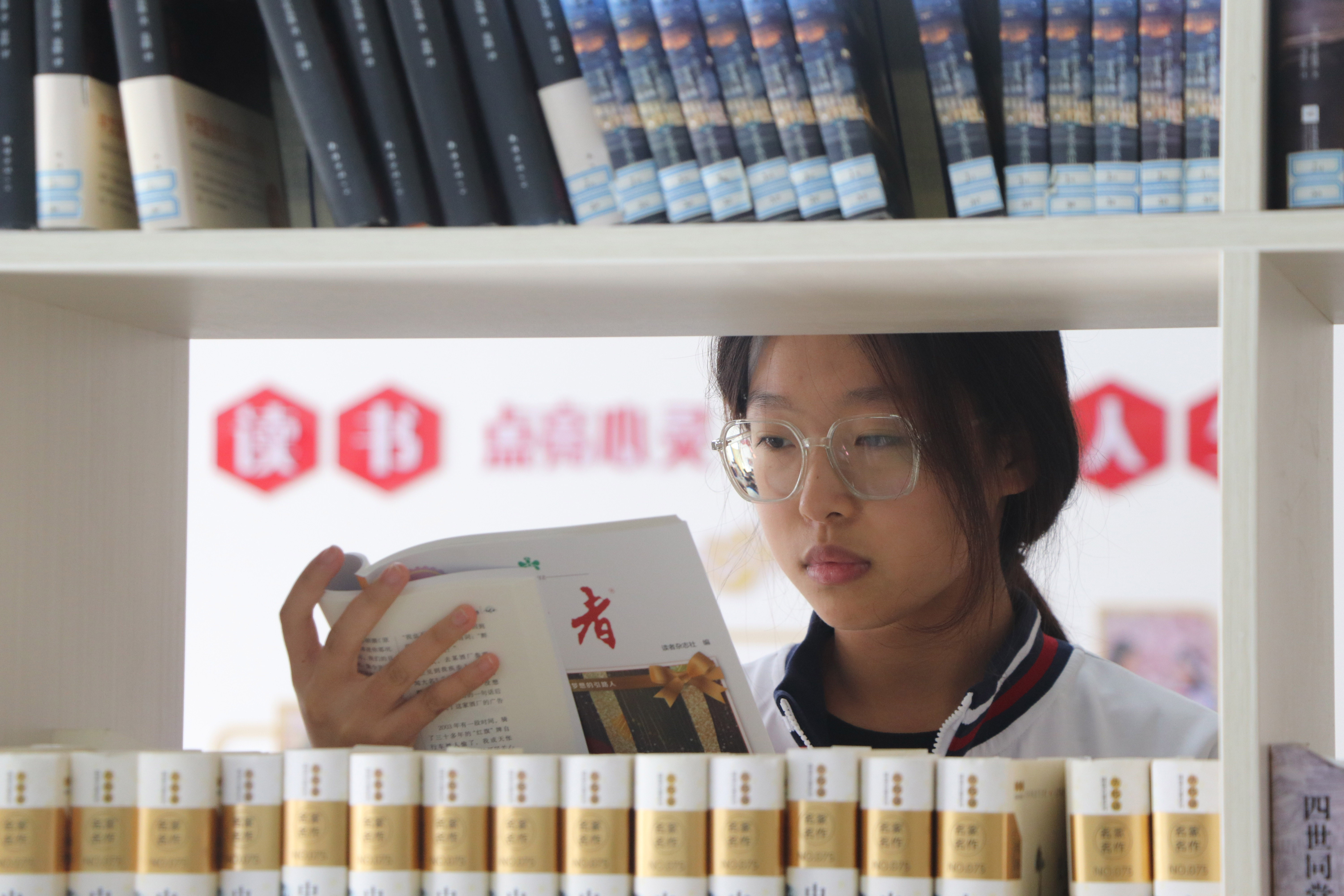 近日,山東省高密市第五中學(xué)推進(jìn)書香校園建設(shè),通過(guò)好書我推薦、課前名著導(dǎo)讀、閱讀課等形式,引導(dǎo)中學(xué)生多讀書、讀好書,在校園中營(yíng)造濃厚的書香氛圍。(中國(guó)教育報(bào)-中國(guó)教育新聞網(wǎng)通訊員 李海濤 攝)