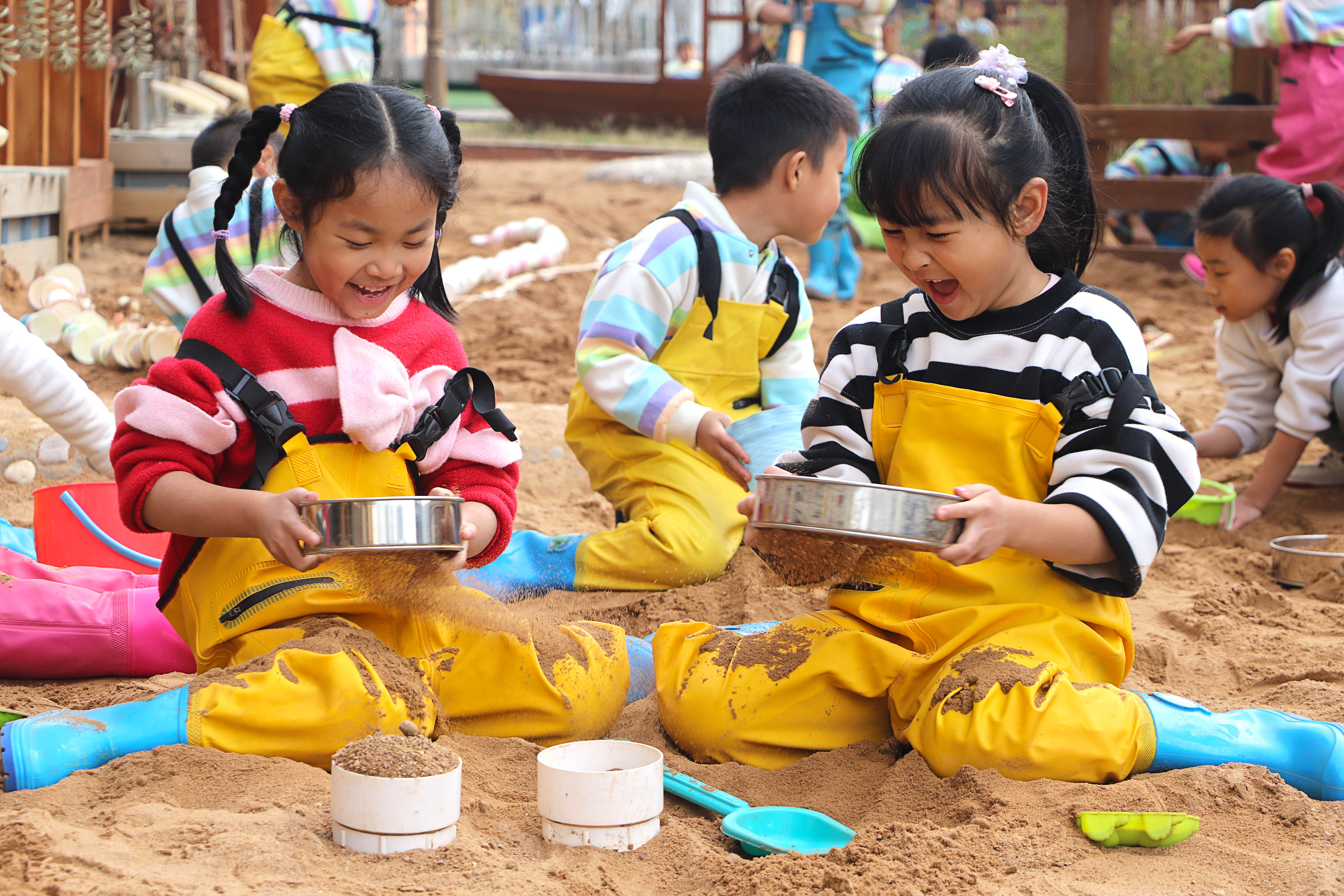 11月20日,山東省高密市鳳鳴實驗幼兒園,小朋友在玩沙土游戲。李海濤 攝
