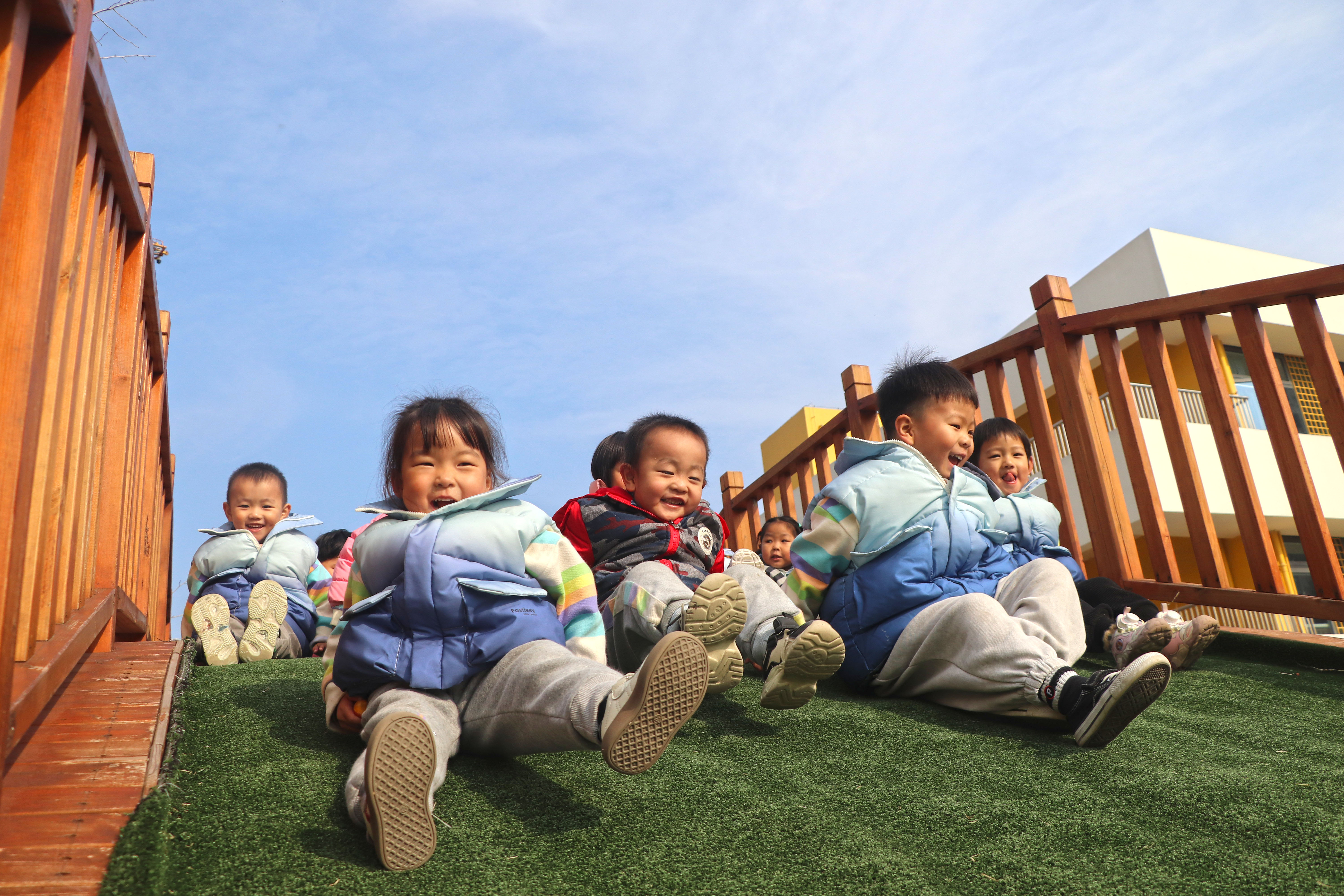 11月20日,在山東省高密市鳳鳴實驗幼兒園,小朋友在進行戶外活動。李海濤 攝