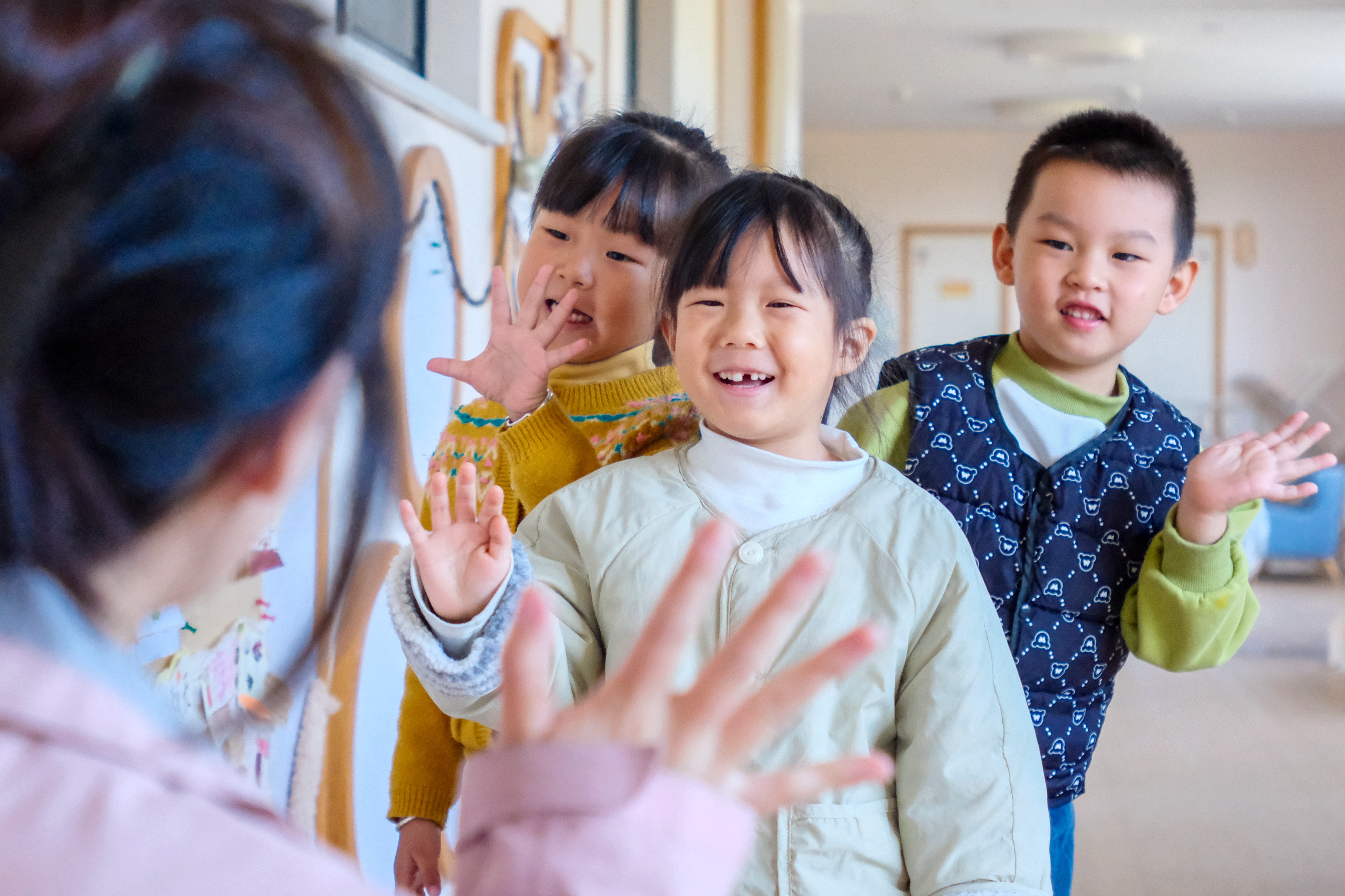 11月21日,小朋友們在老師的指導(dǎo)下學(xué)習(xí)問候禮儀。譚云俸 周佳麗 攝