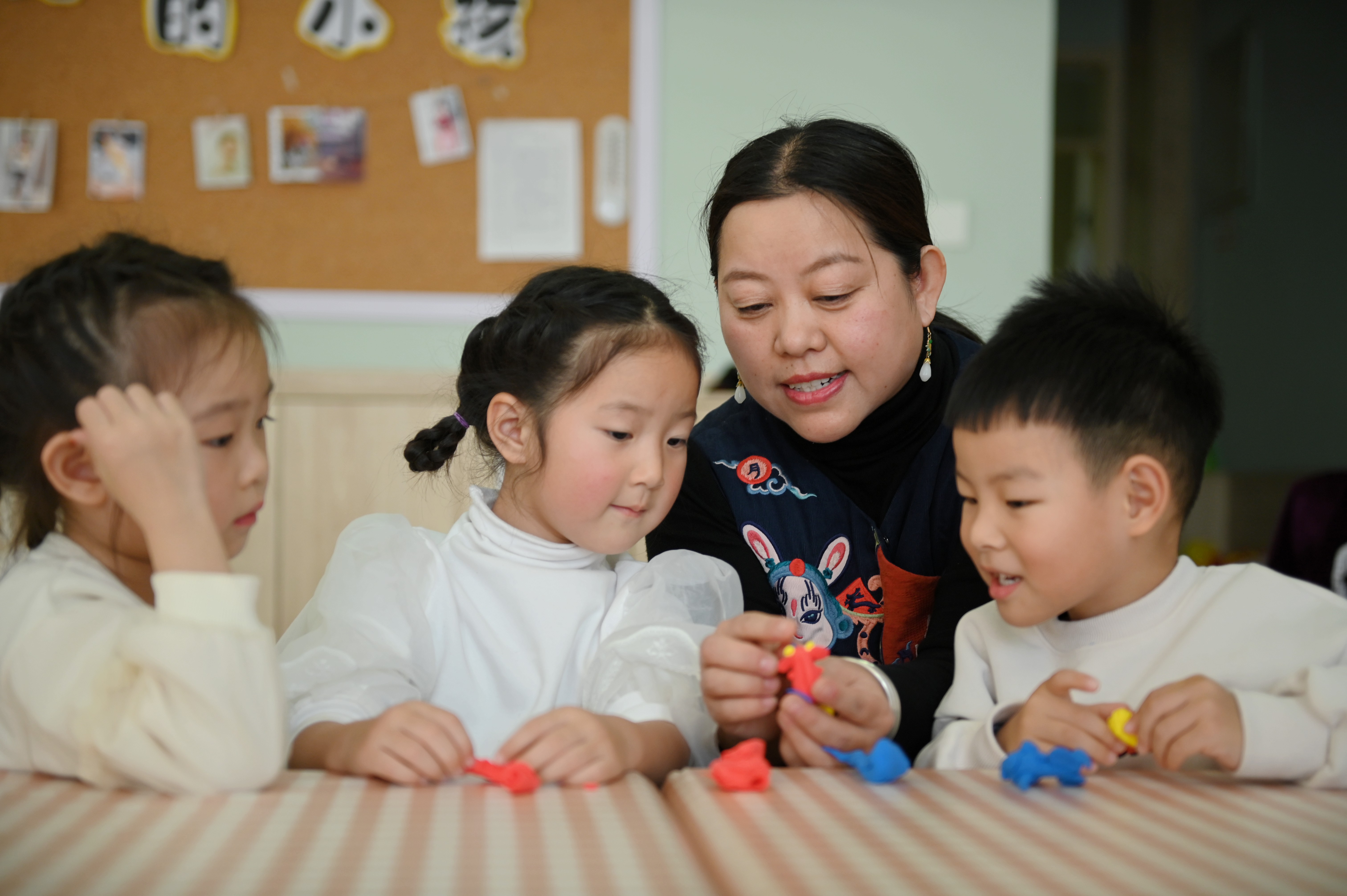 11月21日,河北省邯鄲市經(jīng)開區(qū)中心幼兒園開展“面塑技藝進(jìn)校園”活動,邀請非遺面塑傳承人走進(jìn)校園,傳授泥塑制作技藝,讓小朋友在實(shí)踐中體驗(yàn)到泥塑的快樂。(中國教育報-中國教育新聞網(wǎng)通訊員 周紹宗 攝)