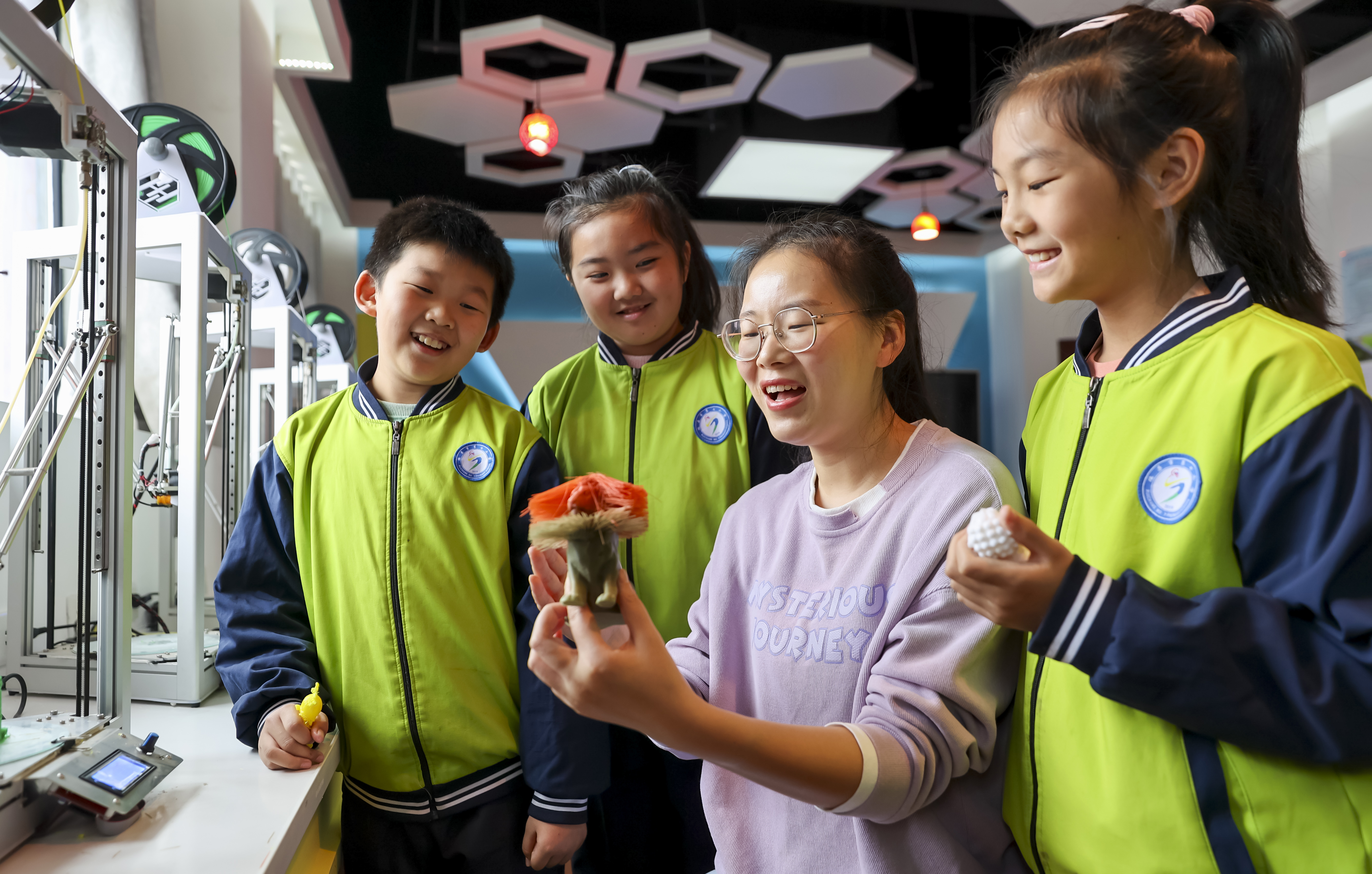 江西省瑞昌市第七小學通過開設特色科技課程,將3D打印設備引進校園,讓學生們體驗3D打印創(chuàng)作,享受科技帶來的樂趣。(中國教育報-中國教育新聞網通訊員 魏東升 攝)