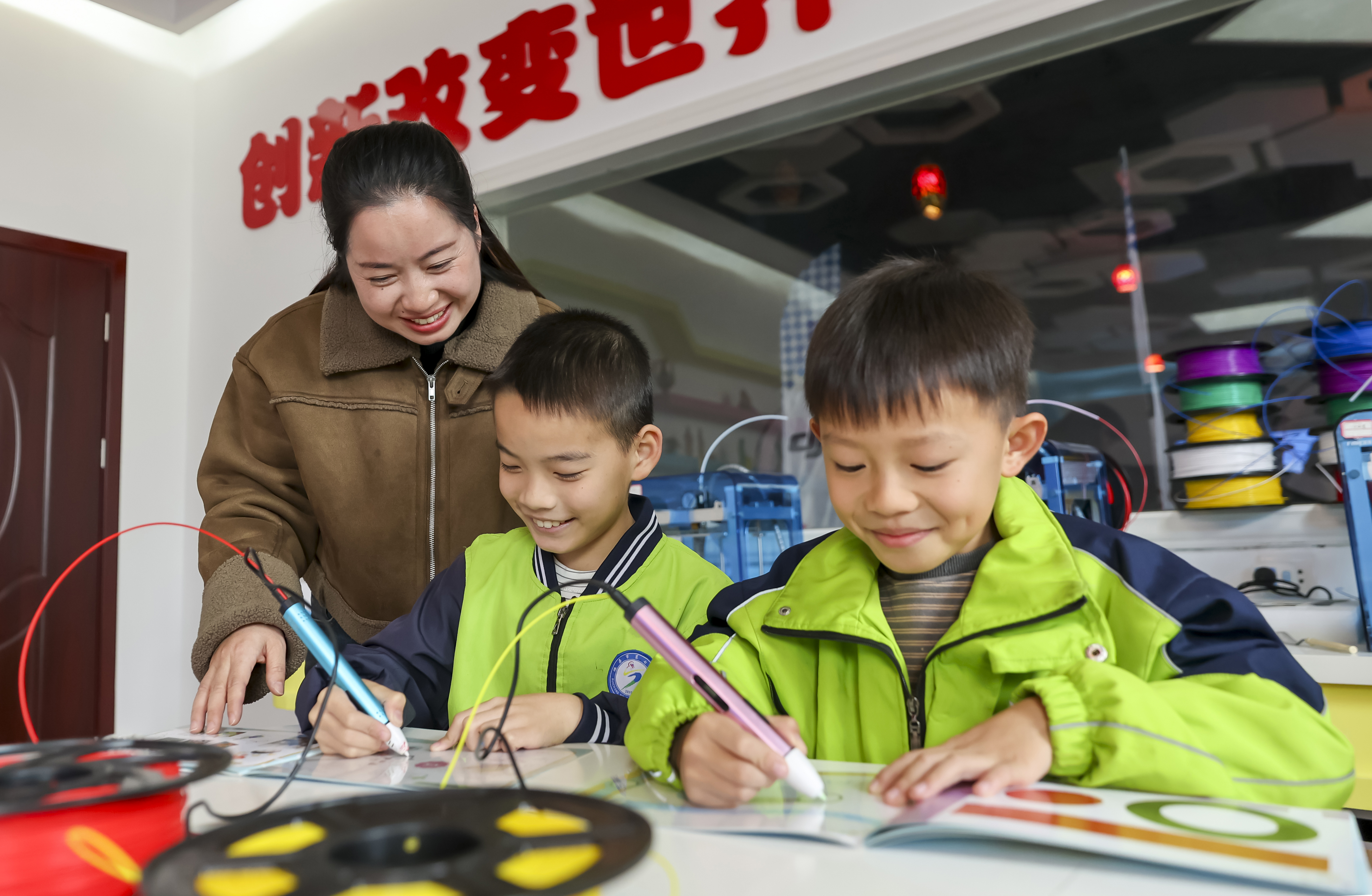 11月20日,學生在老師輔導下學習使用3D打印筆。魏東升 攝