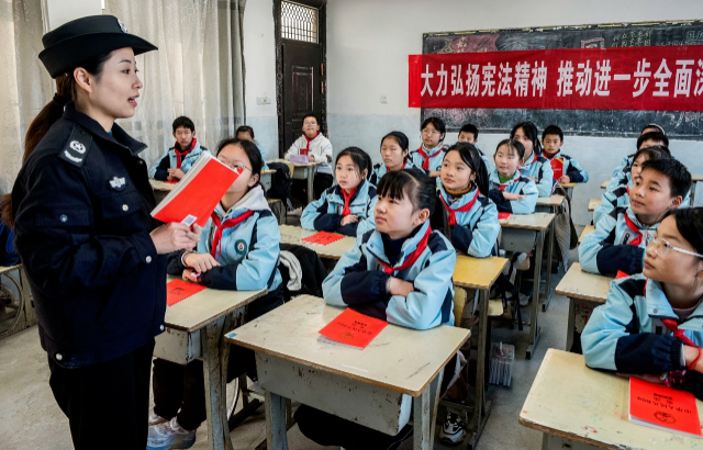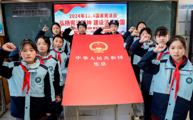 11月26日,安徽省含山縣司法局、姚廟中心學校聯(lián)合開展“憲法知識進課堂”主題教育活動,縣司法局普法工作者給學生贈送憲法單行本、講解憲法知識、書寫“法”字、組織宣誓。通過活動弘揚憲法精神,增強學生們的憲法意識和法治觀念,迎接12月4日第11個“國家憲法日”的到來。中國教育報-中國教育新聞網(wǎng)通訊員 歐宗濤 攝