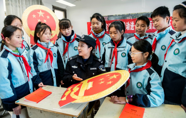 普法工作者給學生講解國徽知識。通訊員 歐宗濤 攝