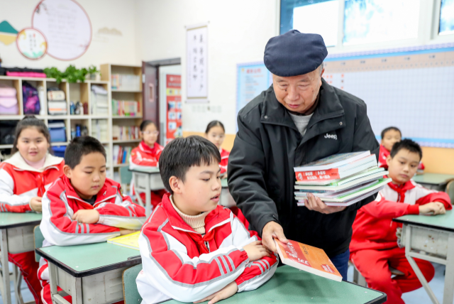 愛(ài)心人士向?qū)W生贈(zèng)送課外書(shū)籍。通訊員 邱海鷹 攝