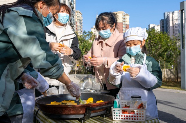 家長和孩子一道做南瓜餅。通訊員 肖本祥 攝
