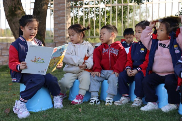 浙江省諸暨市暨南街道街亭幼兒園把閱讀搬進(jìn)大自然 陳霞芳 攝