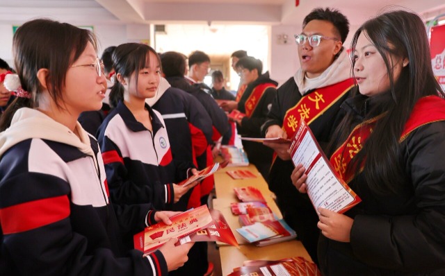 2024年12月2日,河北科技師范學(xué)院文法學(xué)院、杜莊鎮(zhèn)聯(lián)合開(kāi)展“普法宣傳進(jìn)校園”活動(dòng)。該活動(dòng)由河北科技師范學(xué)院文法學(xué)院教師、大學(xué)生志愿者共同走進(jìn)杜莊學(xué)區(qū)初級(jí)中學(xué),通過(guò)由文法學(xué)院教師為杜莊學(xué)區(qū)初級(jí)中學(xué)教師普及法律知識(shí)、大學(xué)生志愿者走進(jìn)校園為學(xué)生普及《憲法》相關(guān)法律知識(shí)等方式,增強(qiáng)學(xué)生的法律意識(shí)和法治觀念,引導(dǎo)學(xué)生樹(shù)立正確的人生觀、價(jià)值觀。(中國(guó)教育報(bào)-中國(guó)教育新聞網(wǎng) 通訊員 曹建雄 攝)