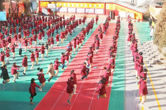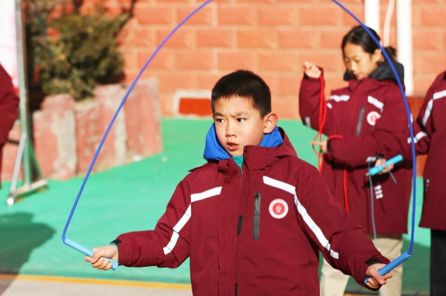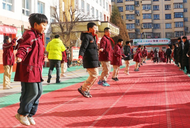 近日,河北省張家口市橋東區(qū)寶善街小學(xué)利用大課間開展跳繩比賽,1600余名師生一人一繩全員參與,按照班級、年級、學(xué)校的順序角逐各級跳繩比賽冠軍。普通的比賽項目,豐富了冬日校園的文體生活、確保了學(xué)生的在?;顒訒r間。(中國教育報-中國教育新聞網(wǎng) 通訊員 岑屹 攝)