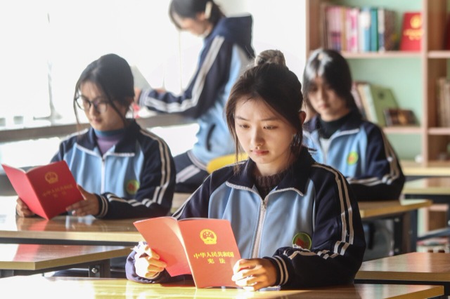 學(xué)生在學(xué)習(xí)憲法知識 李海濤 攝