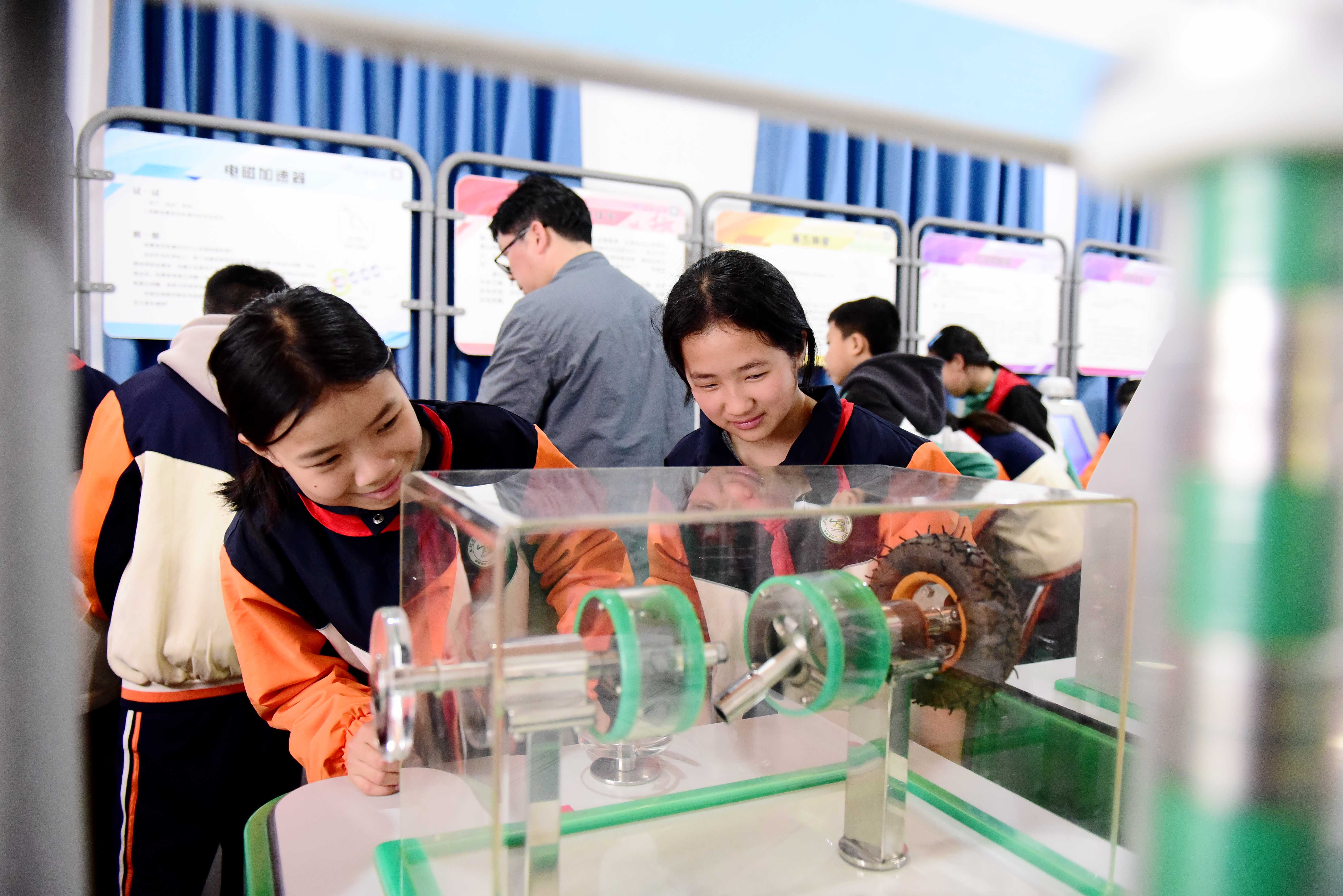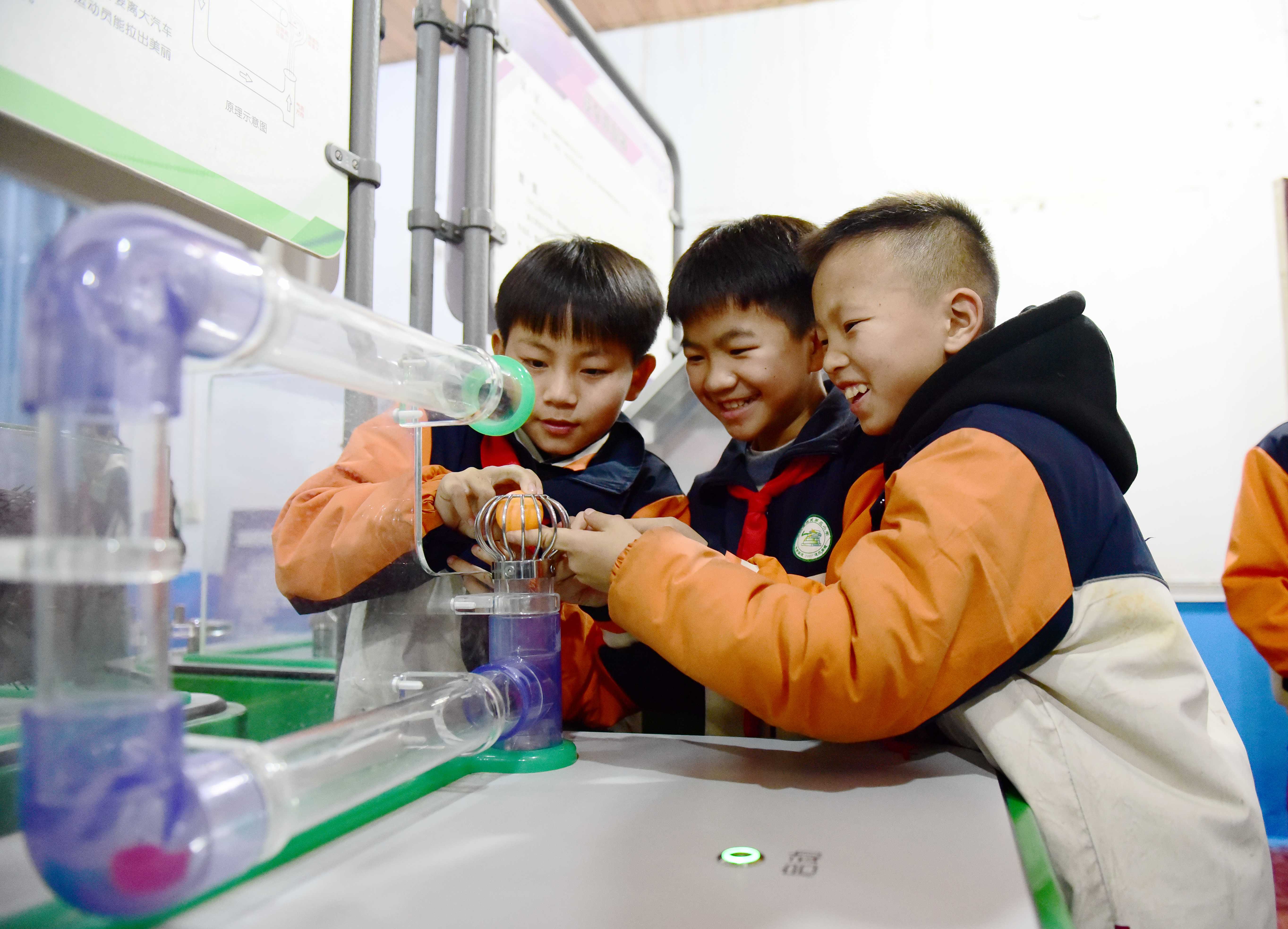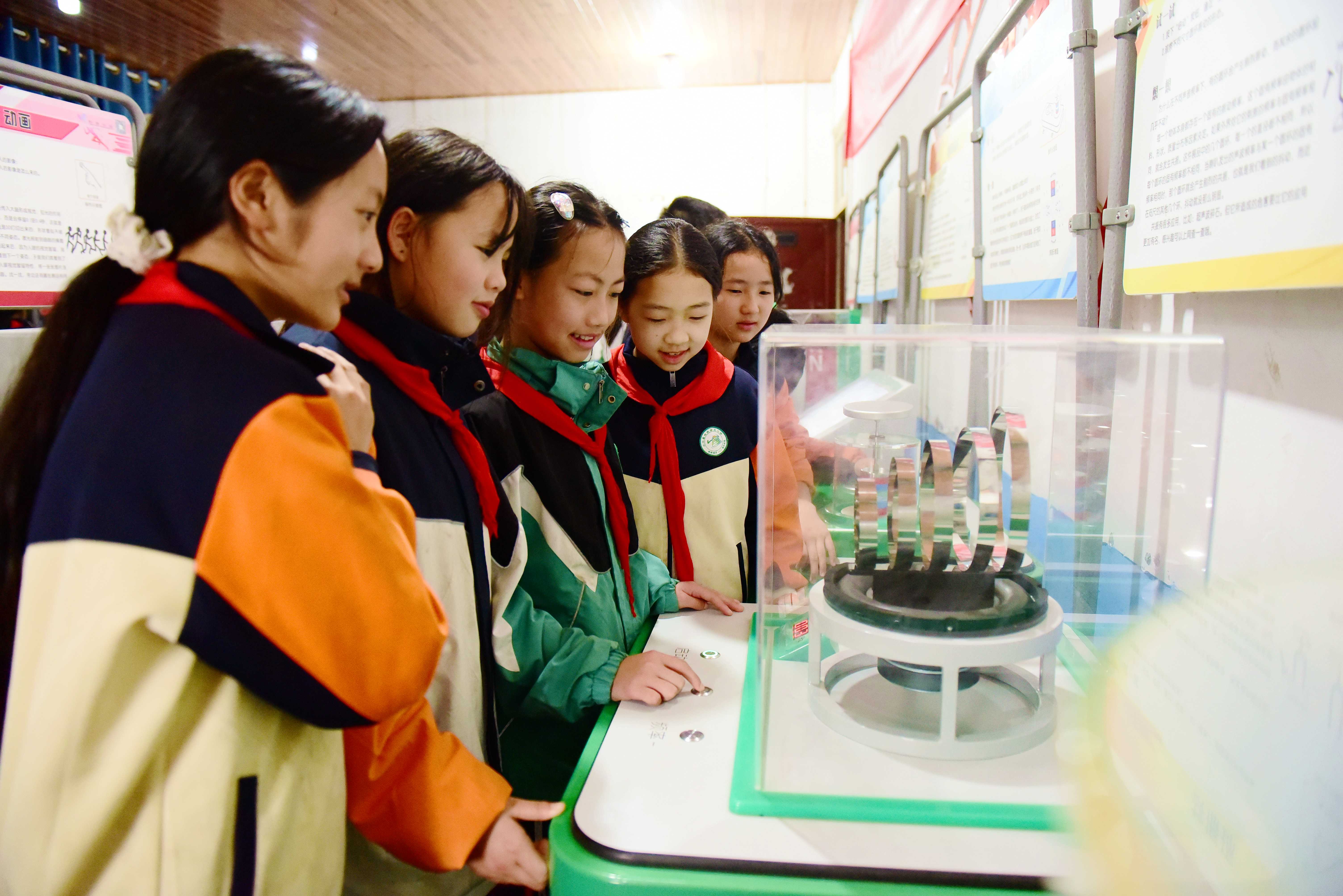連日來(lái),中國(guó)流動(dòng)科技館貴州巡展在貴州省黔東南苗族侗族自治州從江縣開(kāi)展,活動(dòng)吸引了眾多中小學(xué)生前來(lái)觀看,學(xué)生通過(guò)科學(xué)老師講解、體驗(yàn)操作科技模型等方式,探索科技奧秘。(中國(guó)教育報(bào)-中國(guó)教育新聞網(wǎng)通訊員 石宏輝 攝)