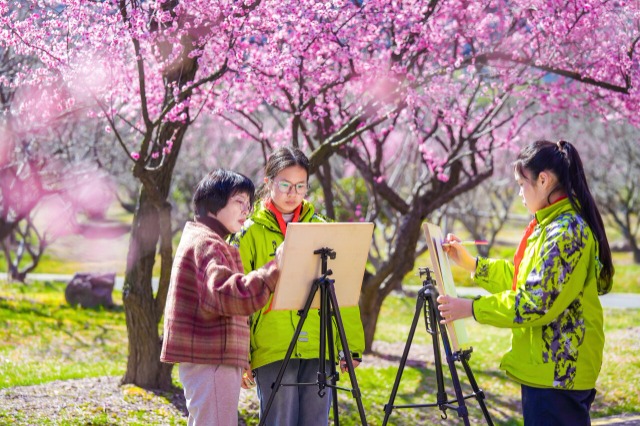 3月17日,浙江省湖州市長興縣太湖圖影中心小學開展“戶外寫生繪春景”主題活動,學生們在美術老師的帶領下進行戶外采風、寫生,用畫筆描繪美麗春色。中國教育報-中國教育新聞網通訊員 陳海偉 攝