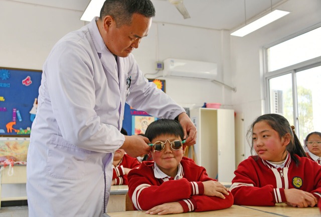 中醫(yī)院醫(yī)護(hù)人員給孩子們感受眼部核桃灸。通訊員 王華斌 攝