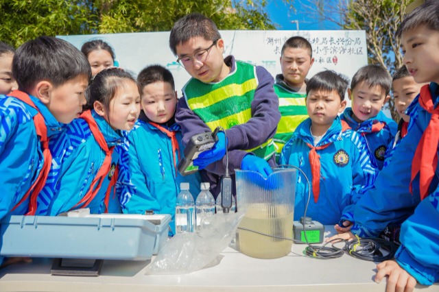 3月18日,浙江省湖州市長興縣雉城街道回龍山社區(qū)新時代文明實踐站,長興縣實驗小學(xué)濱海校區(qū)聯(lián)合市生態(tài)環(huán)境局長興分局開展以“學(xué)習(xí)制水知識 迎接世界水日”為主題的科普活動,通過講解水知識、做水過濾實驗等形式,讓學(xué)生們了解水知識,增強(qiáng)節(jié)水護(hù)水意識。中國教育報-中國教育新聞網(wǎng)通訊員 陳海偉 攝