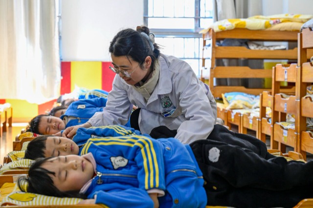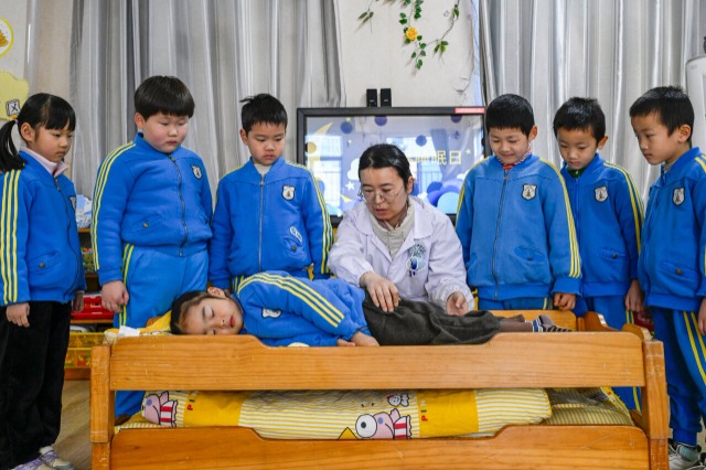 3月19日,安徽省合肥市廬陽(yáng)區(qū)雙崗街道關(guān)工委聯(lián)合轄區(qū)幼兒園開(kāi)展“科學(xué)睡眠,從小做起”主題活動(dòng),邀請(qǐng)社區(qū)衛(wèi)生服務(wù)中心醫(yī)護(hù)人員為孩子們講解健康睡眠知識(shí),養(yǎng)成良好睡眠習(xí)慣,增強(qiáng)體質(zhì)健康,迎接世界睡眠日的到來(lái)。中國(guó)教育報(bào)-中國(guó)教育新聞網(wǎng)通訊員 趙明 攝