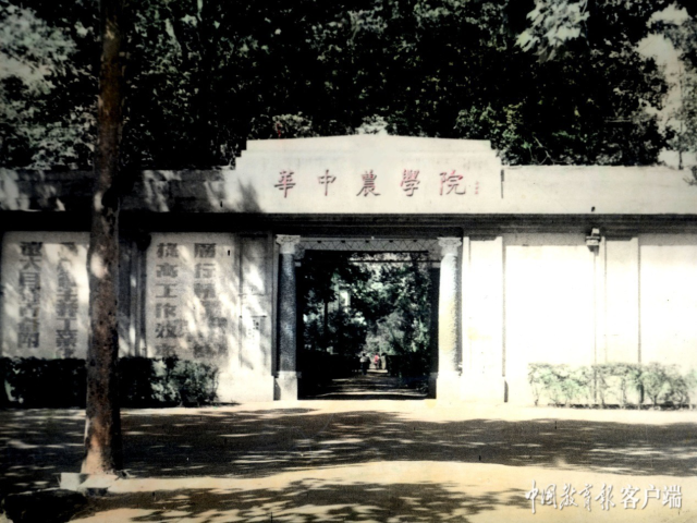 正是那一年,學(xué)校邀請(qǐng)毛澤東的老師徐特立題寫(xiě)了“華中農(nóng)學(xué)院”校名。今天,徐特立題寫(xiě)的校名仍鐫刻在主樓的門(mén)楣上,見(jiàn)證著5平方公里山水校園的紅色記憶。