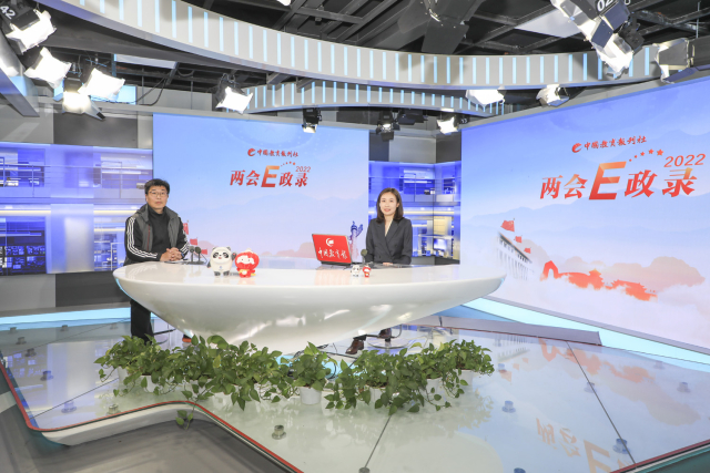 中國(guó)教科院體育衛(wèi)生藝術(shù)教育研究所所長(zhǎng)吳鍵(左)做客中國(guó)教育報(bào)刊社“兩會(huì)E政錄”演播室。單藝偉 攝
