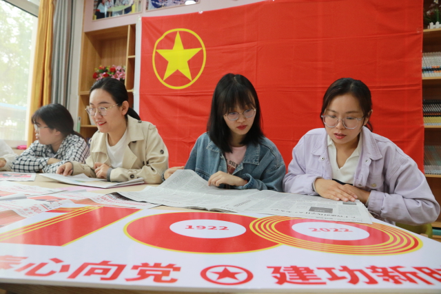 5月13日,山東省高密市第五中學(xué)青年教師在團(tuán)員活動(dòng)室開展集體學(xué)習(xí)。近日,該校組織廣大共青團(tuán)員、青年教師以多種形式學(xué)習(xí)習(xí)近平總書記在慶祝中國(guó)共產(chǎn)主義青年團(tuán)成立100周年大會(huì)上的重要講話精神。廣大青年團(tuán)員教師紛紛表示:要牢記總書記的囑托,踐行“請(qǐng)黨放心、強(qiáng)國(guó)有我”的誓言。李海濤 攝