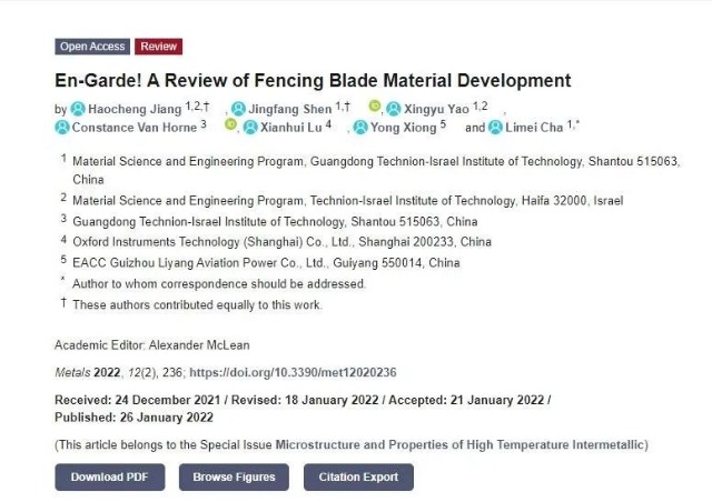 目前,廣以學生已有2個項目發(fā)表論文完成結(jié)項:材料科學與工程專業(yè)2017級學生江昊誠、姚星宇的項目“擊劍運動國產(chǎn)擊劍材料的創(chuàng)新改良”,以及2018級學生林洽、劉栩琦的項目“探究不同退火條件下TNM合金(Ti-Al-Nb-Mo)的微觀結(jié)構(gòu)與力學性能的之間的關(guān)系”。兩個項目組的成員分別以共同第一作者的身份在知名學術(shù)期刊Metals上發(fā)表論文。