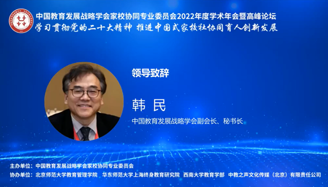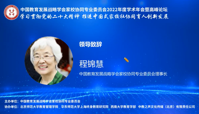 據(jù)悉,本次學(xué)術(shù)年會(huì)暨高峰論壇由中國教育發(fā)展戰(zhàn)略學(xué)會(huì)家校協(xié)同專業(yè)委員會(huì)主辦,北京師范大學(xué)教育管理學(xué)院、華東師范大學(xué)上海終身教育研究院、西南大學(xué)教育學(xué)部和中教之聲文化傳媒(北京)有限責(zé)任公司協(xié)辦。