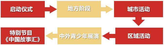 按照本屆活動(dòng)的規(guī)則,啟動(dòng)儀式之后,活動(dòng)將分為地方階段——城市階段——區(qū)域階段——中外青少年展演(全國(guó)總決選)——特別節(jié)目《中國(guó)故事匯》(頒獎(jiǎng)典禮)這五個(gè)階段進(jìn)行。