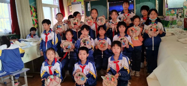 寧夏固原彭陽(yáng)縣的學(xué)生在展示絲帶盤花作品。中國(guó)宋慶齡青少年科技文化交流中心供圖(資料圖片)