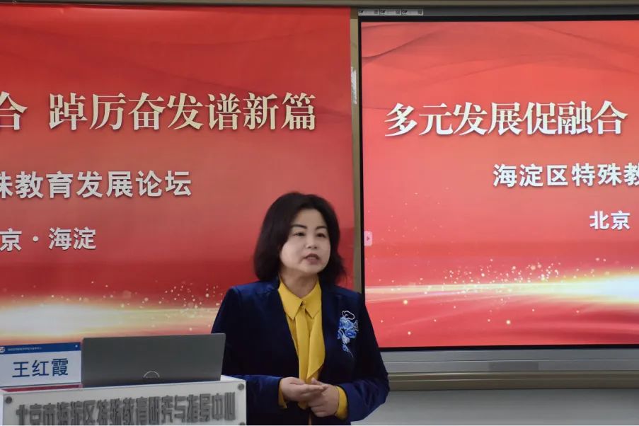 海淀區(qū)特殊教育中心主任王紅霞做主題報告。中心供圖