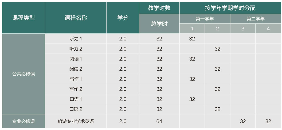 表1:中加合作辦學(xué)項目英語類課程學(xué)時、學(xué)分導(dǎo)讀表