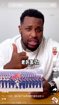 伊博在視頻中點(diǎn)贊國慶70周年大閱兵 圖|視頻截圖