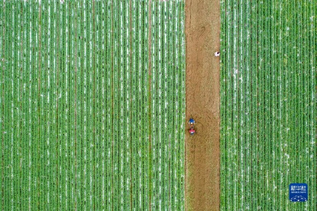 在四川省閬中市彭城鎮(zhèn),村民駕駛農(nóng)機(jī)翻耕菜地(2月23日攝,無(wú)人機(jī)照片)。新華社發(fā)(王玉貴 攝)
