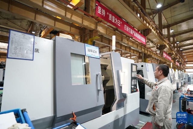通用技術(shù)集團(tuán)沈陽(yáng)機(jī)床的工人在車間工作(2月14日攝)。新華社記者 潘昱龍 攝