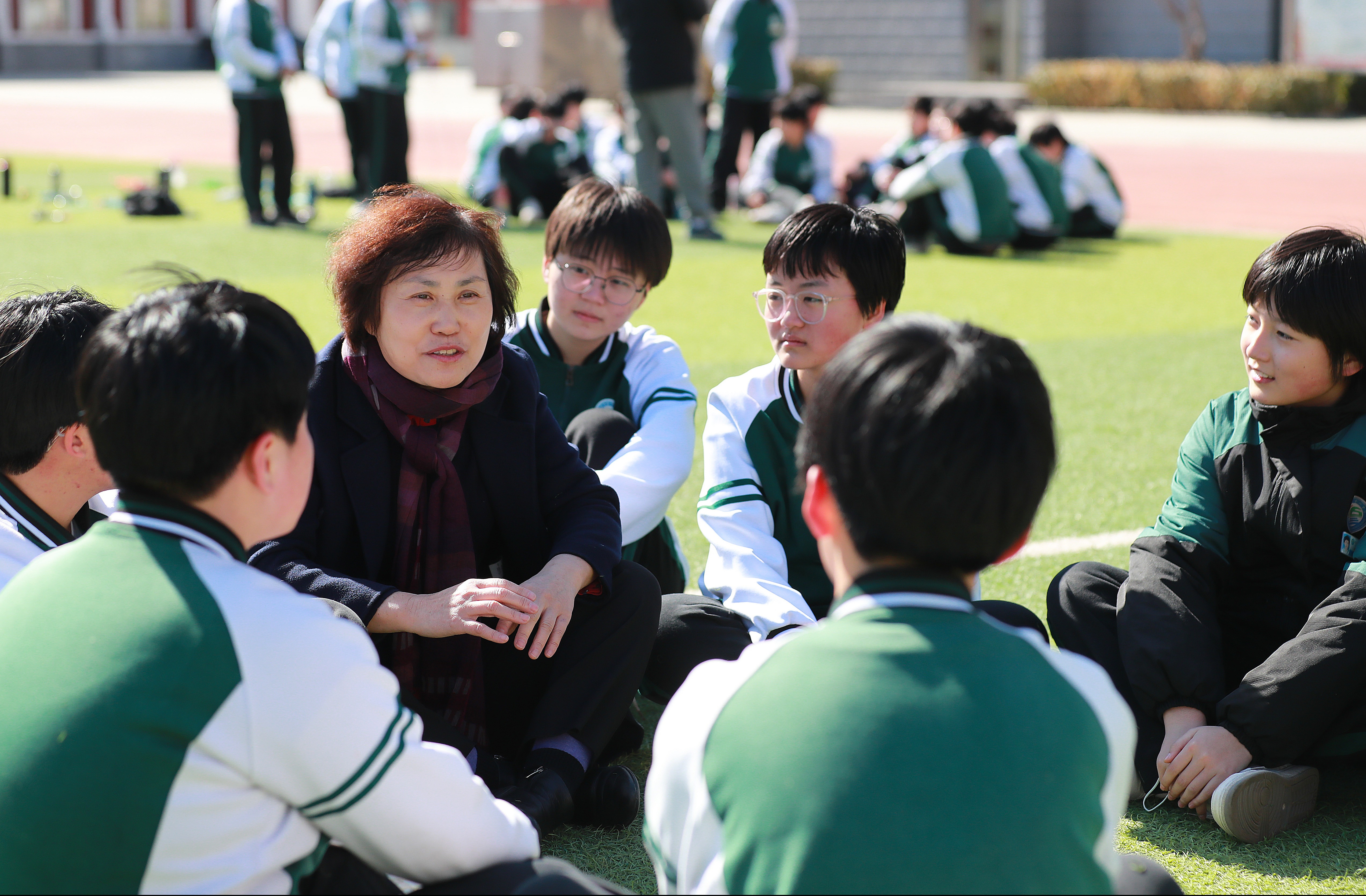 2月21日,大郭莊小學(xué),孫曉穎與孩子們促膝交談。