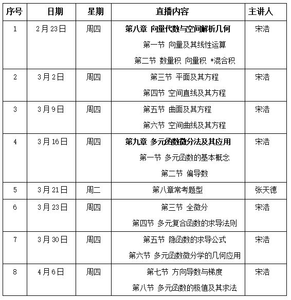 不用擔(dān)心,3月9日19:00-21:00,宋浩老師主講的“高數(shù)(下)習(xí)題課”第三期,將帶大家一起探索空間解析幾何的奧秘,逐一擊破難點(diǎn)。準(zhǔn)備好觀看直播,一起夯實(shí)高數(shù)基礎(chǔ)、搭建課程知識(shí)體系、提升高數(shù)解題能力!