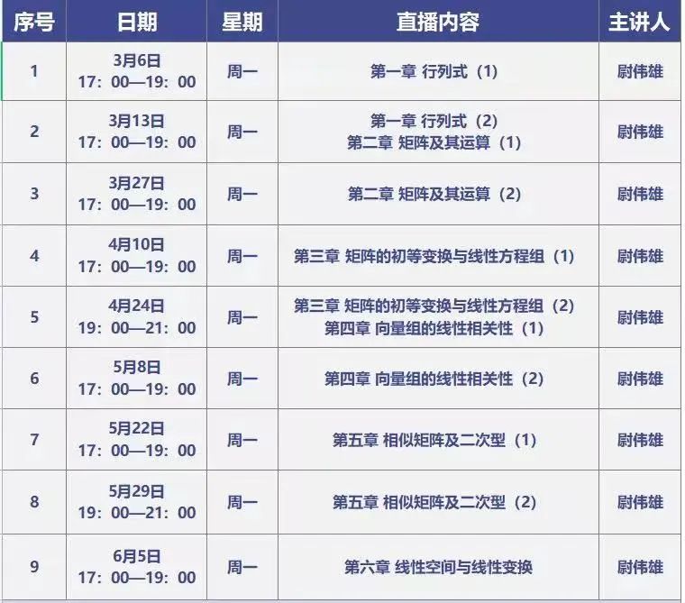 3月27日17:00-19:00,第三講——第二章 矩陣及其運算(2),敬請期待。