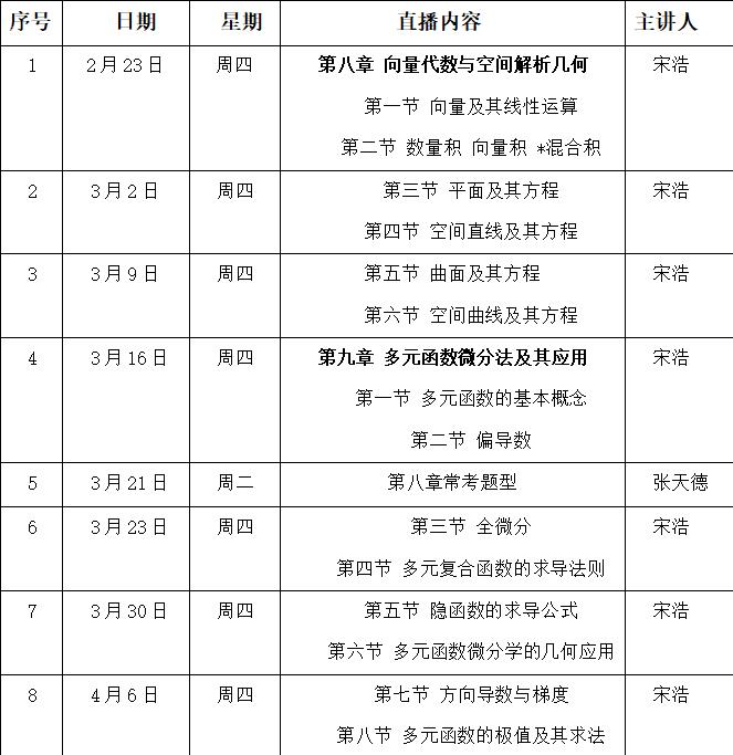 下期預告:3月30日19:00-21:00,宋浩老師將帶來“隱函數(shù)的求導公式”“多元函數(shù)微分學的幾何應用”,敬請期待!