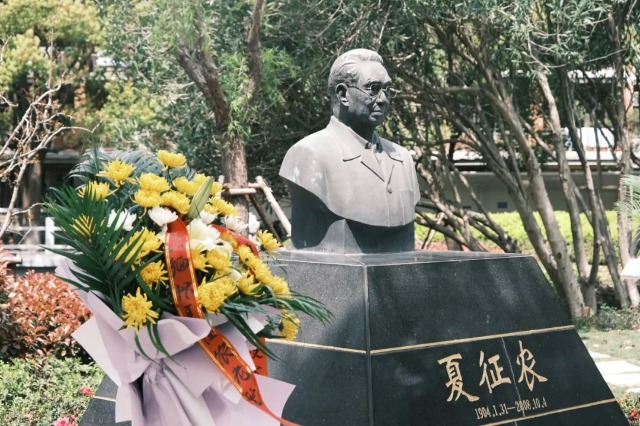 上海東海職業(yè)技術(shù)學(xué)院舉行老校長夏征農(nóng)銅像祭掃儀式 學(xué)校供圖