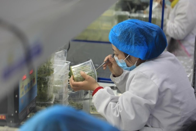 3月2日,在定西市渭源縣五竹馬鈴薯良種繁育專業(yè)合作社,工作人員正在進行馬鈴薯脫毒苗切段繁育。新華社記者張智敏 攝