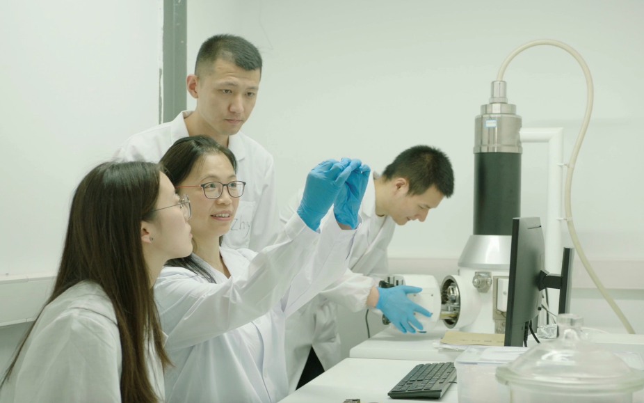 覃小紅研究團隊在做實驗。(學(xué)校供圖)